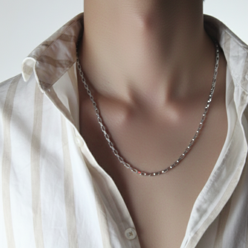 Upgrade your everyday look with this sleek Silver Link Chain, crafted for a modern and minimal style. Featuring evenly spaced rectangular links with a polished finish, this chain delivers a bold yet refined appearance. Perfect to wear on its own or layered with pendants, it’s a versatile piece suitable for both casual and formal wear.